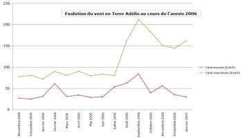 Evolution du vent en Terre Adélie au cours de l'année 2006